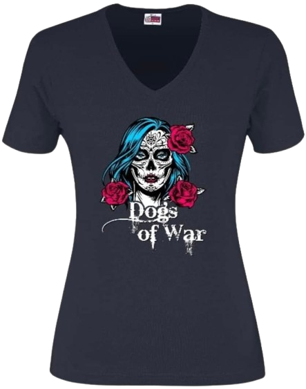 DoW ladies navy blue s/s tshirt with sugerskull emblem (XL & 3XL)